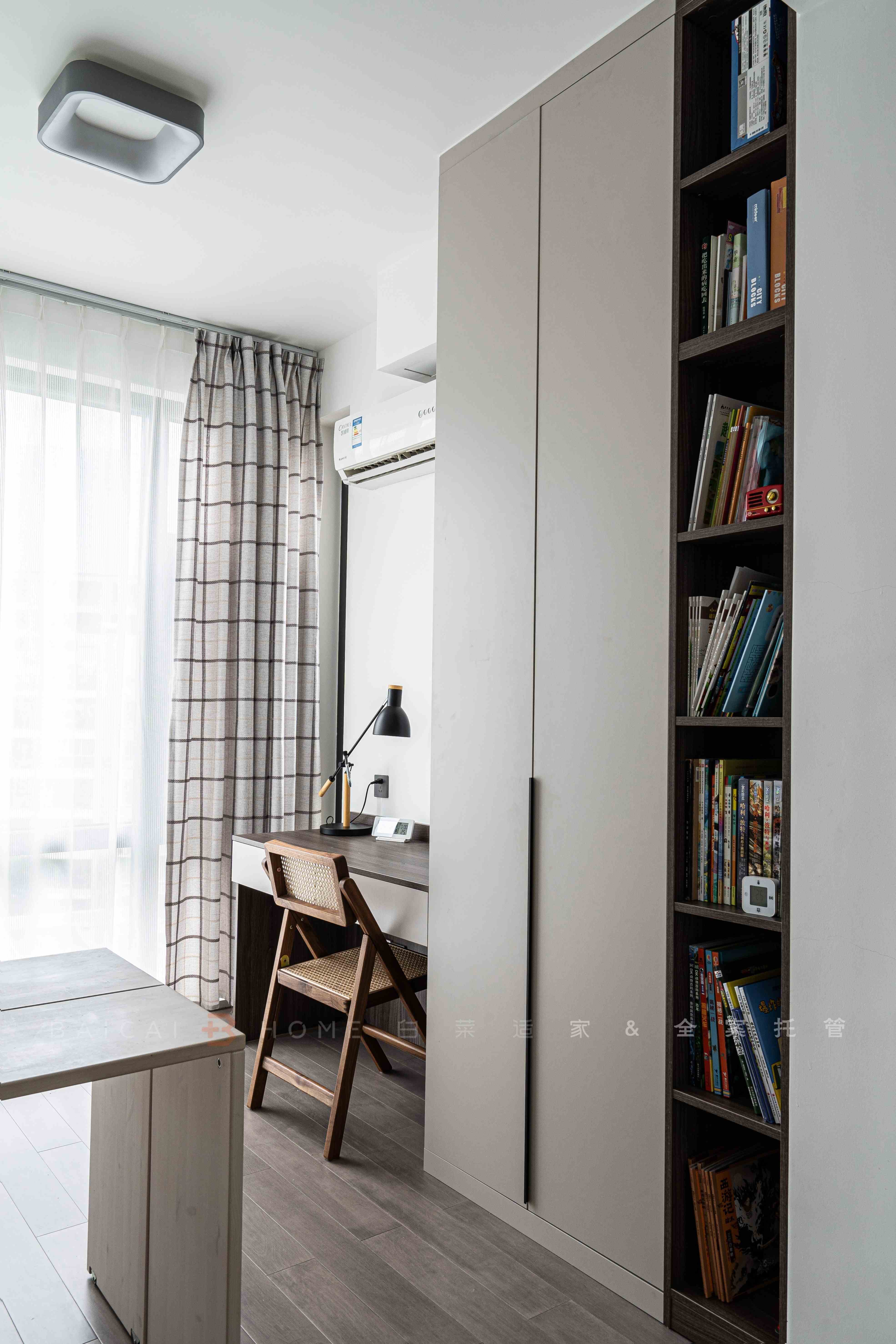女主人平日喜欢在次卧里做些手工活,这里是她的小小工作室,她的小孙子也喜欢在这里玩耍。 因原南边的阳台没有连着次卧,让这里的采光不足,在次卧旁边的门,也影响了客厅的整体性。